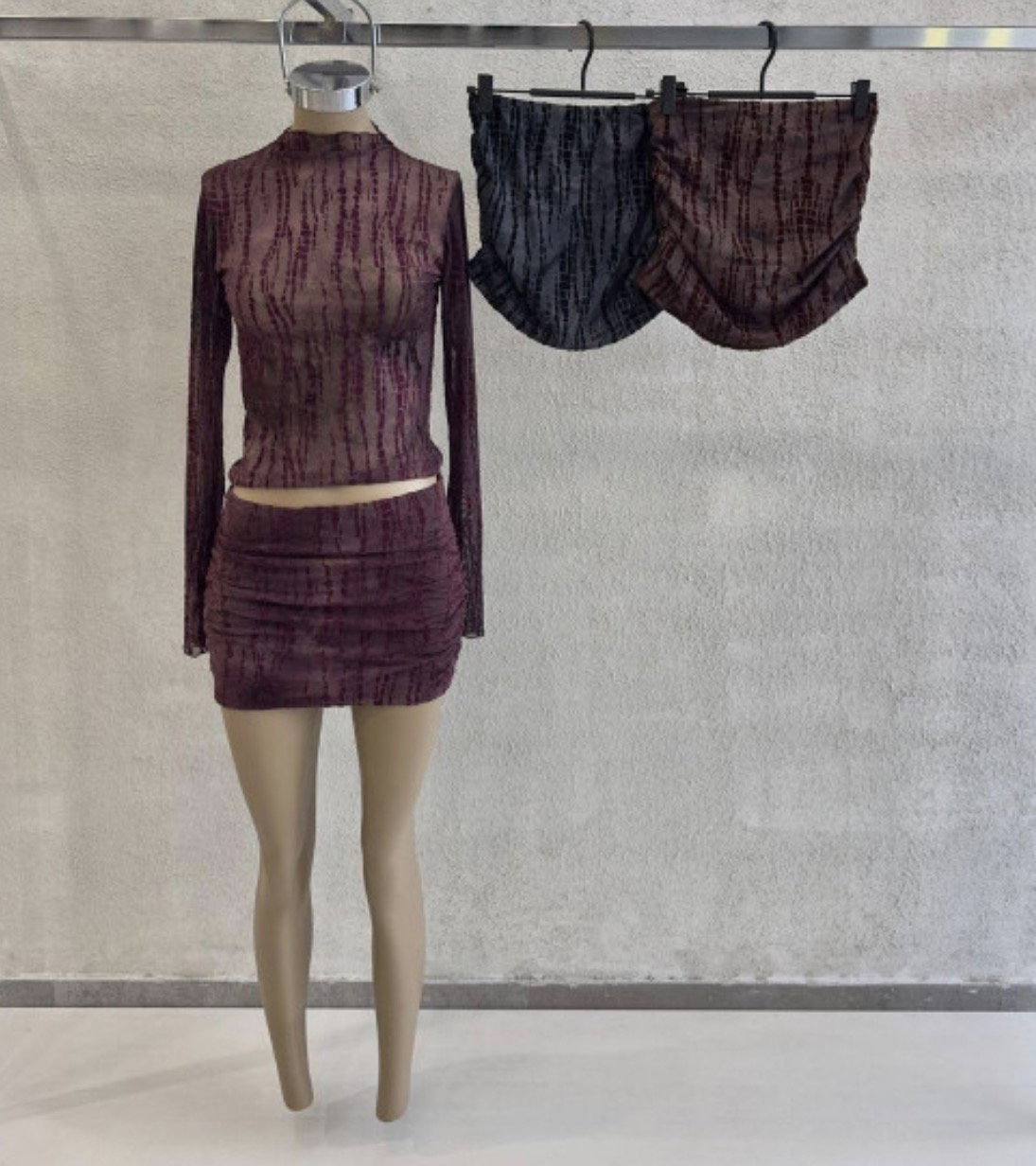 top manga larga, pollera con elastico en cintura, forrada