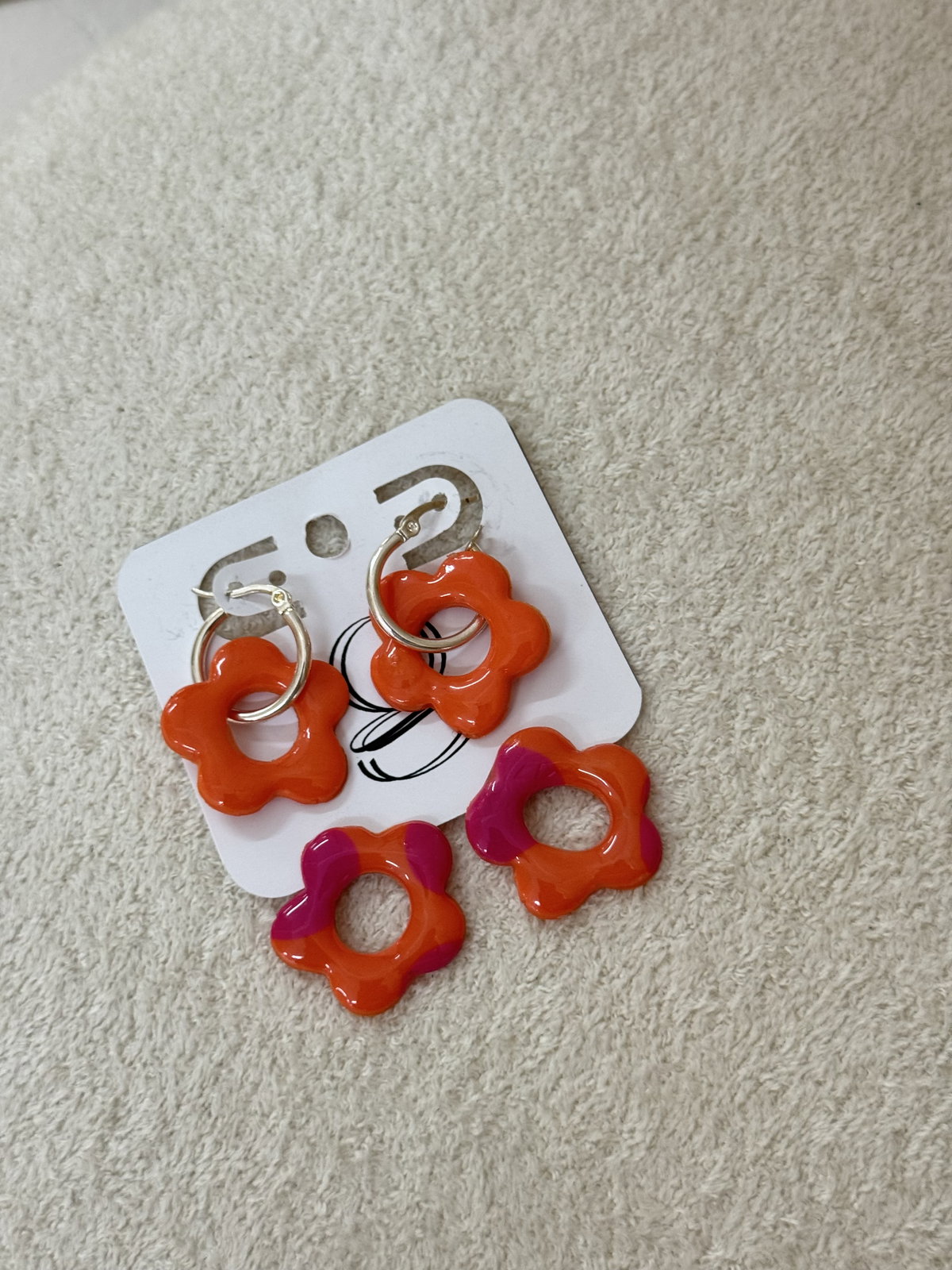 Argollas de acero con dos pares de flores de arcilla polimerica para intercambiar
